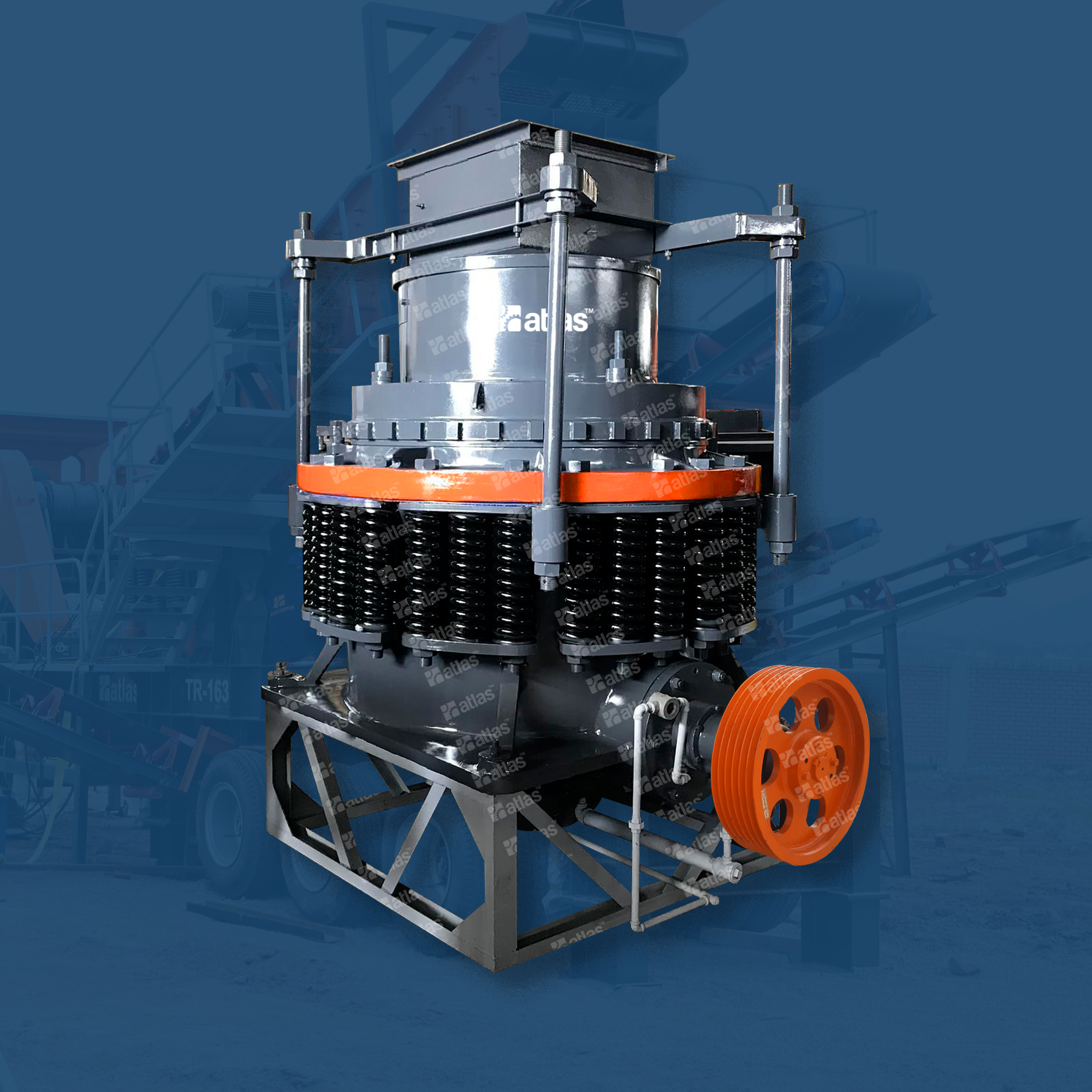 La trituradora de cono hidráulica tiene soportes en los extremos superior e inferior del eje principal, que pueden soportar mayor fuerza de trituración y carrera.