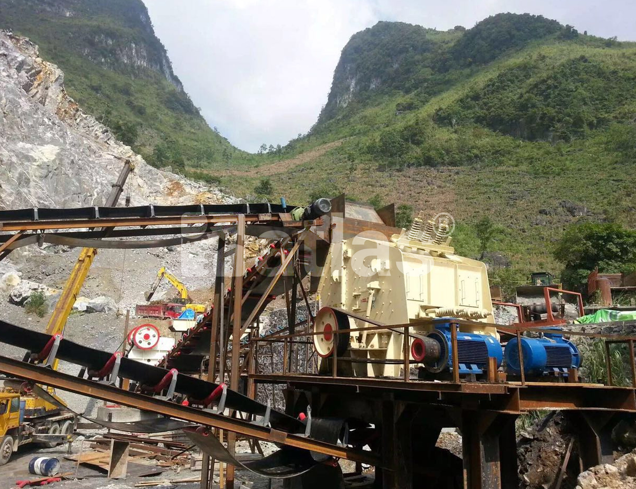 El impactador de la serie AIV sirve de la energía de un impacto o golpe fuerte para romper el material en cuestión. Su concepto de trituración se basa en lanzar las piedras a gran velocidad contra una pantalla de impacto de alta resistencia. Donde estalla y produce múltiples piedras de menor tamaño.