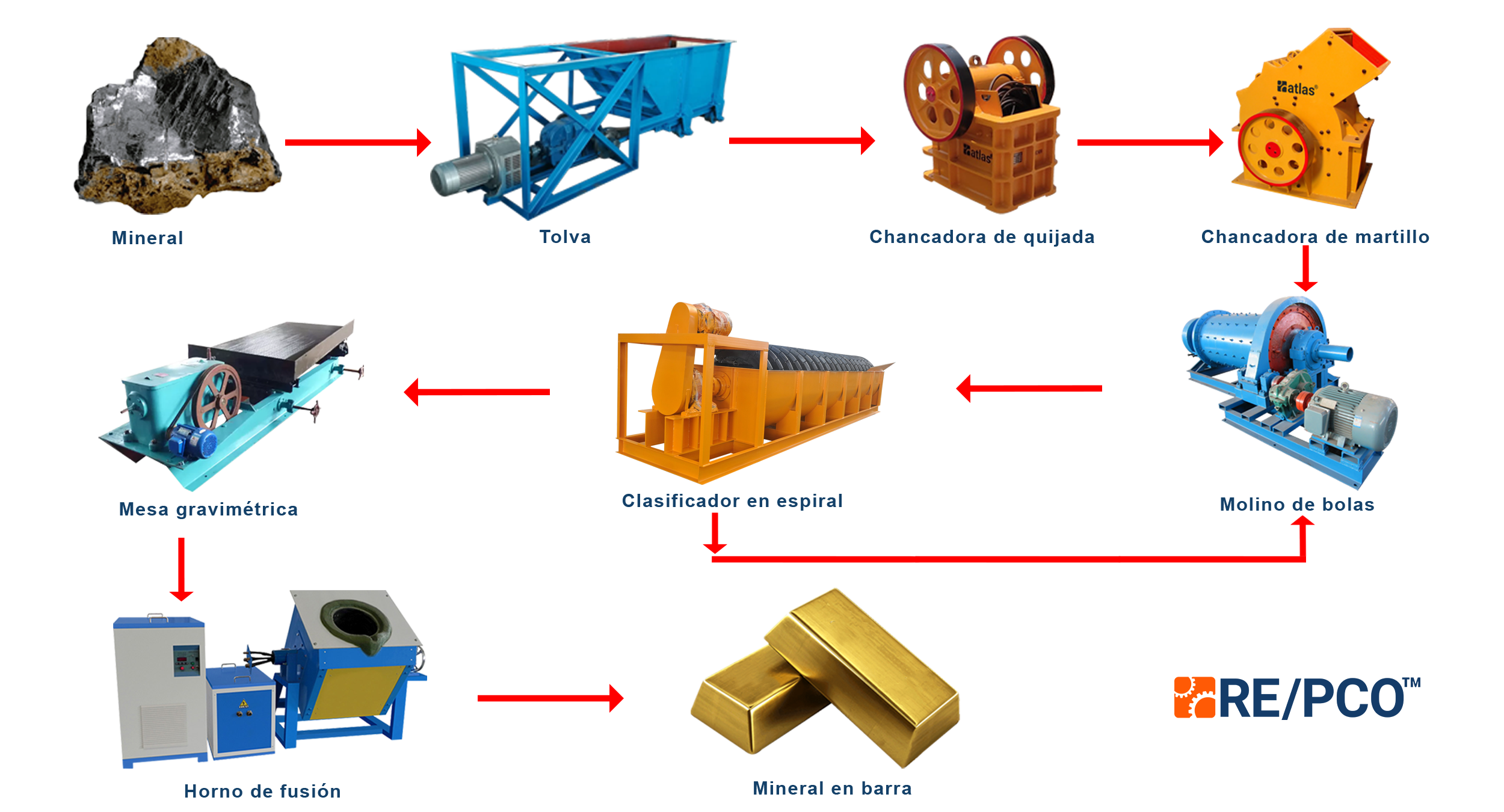 ATLAS COPPER PERÚ, distribuye equipos mineros de la marca RE/PCO™ como equipos de separación por gravedad, equipos de flotación, equipo de trituración y molienda, equipo separador magnético, equipo de criba y clasificador, planta de lavado, equipo de prueba de minería de laboratorio, bomba, correa y accesorio de minería.